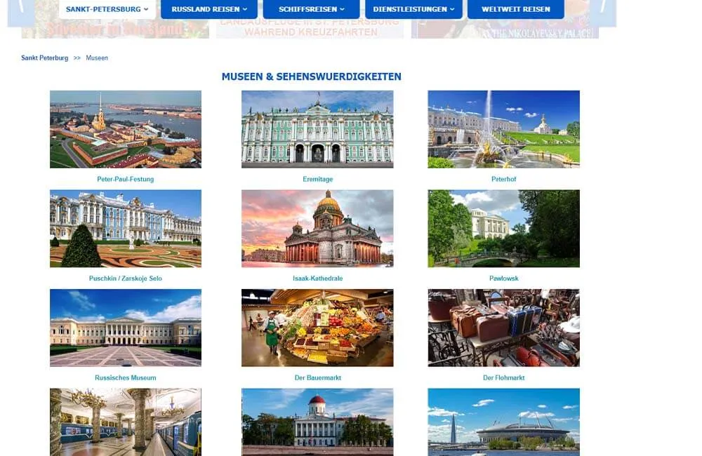- Разработка индивидуального дизайна: главной страницы, каталога туров, каталога круизов, карточки круиза, информационных страниц