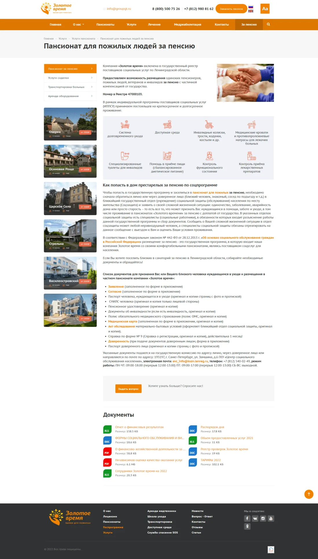 Разработали и выполнили верстку дополнительных блоков на страницах пансионатов и услуг